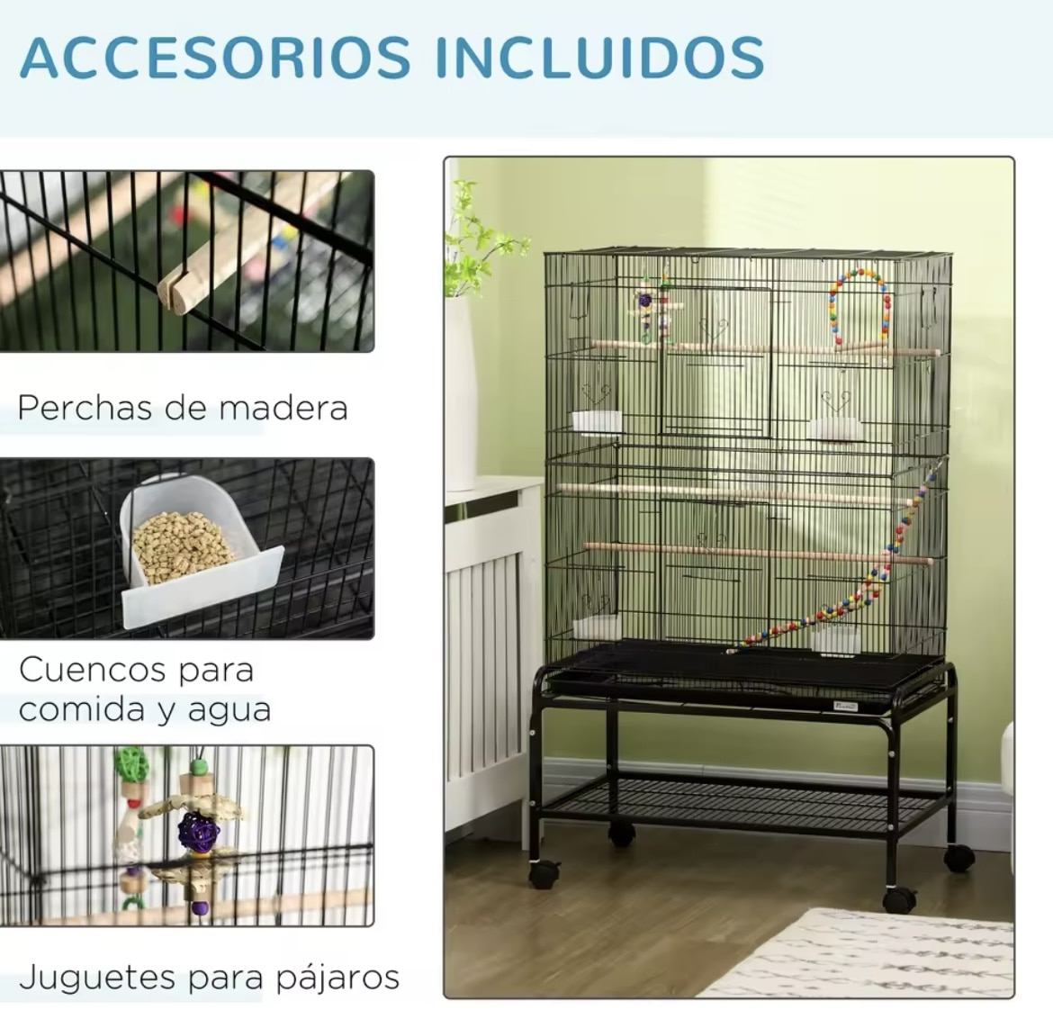 ?? Cage à Oiseaux en Métal avec RouesEspace Confortable et Mobilité Assurée ! ?✨