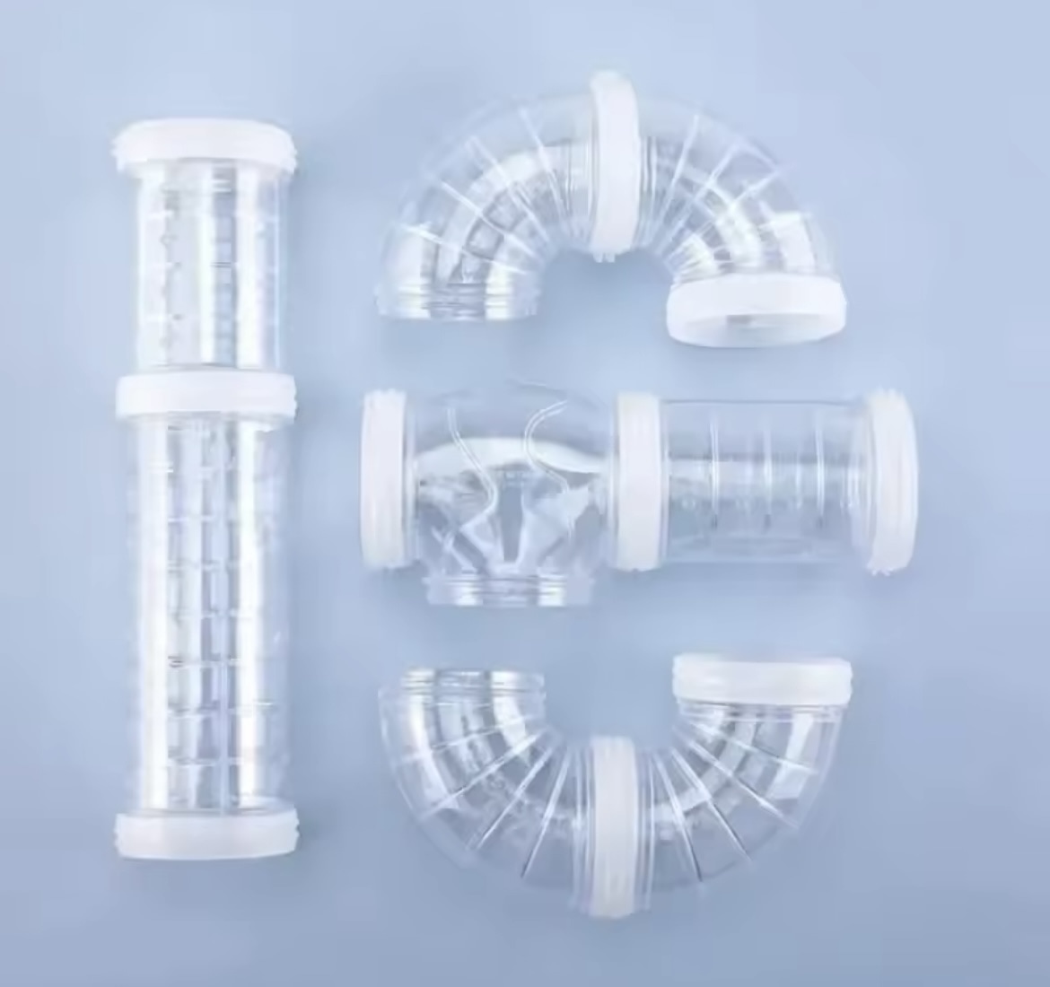 Cet ensemble comprend des tubes externes transparents, un tuyau en U et des accessoires de pipeline, tous conçus pour enrichir l’environnement de votre petit compagnon.